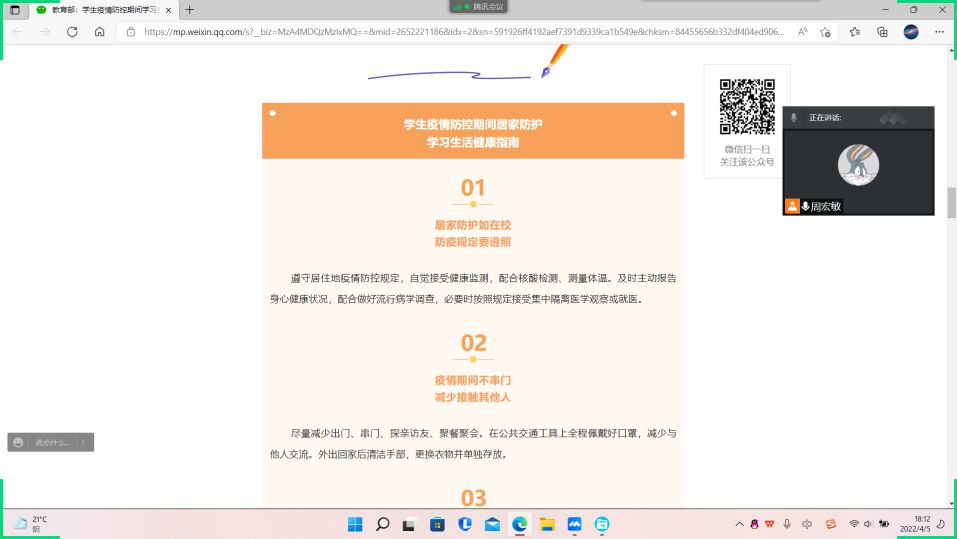 通过学习,大家更加明确了在疫情防控期间要养成良好的卫生习惯、保持健康生活方式,自觉做到不扎堆、不聚集、主动戴好口罩。常洗手、勤通风,科学做好个人防护。在加强防控的同时兼顾学业,加强知识技能学习,增强战胜疫情的信心。